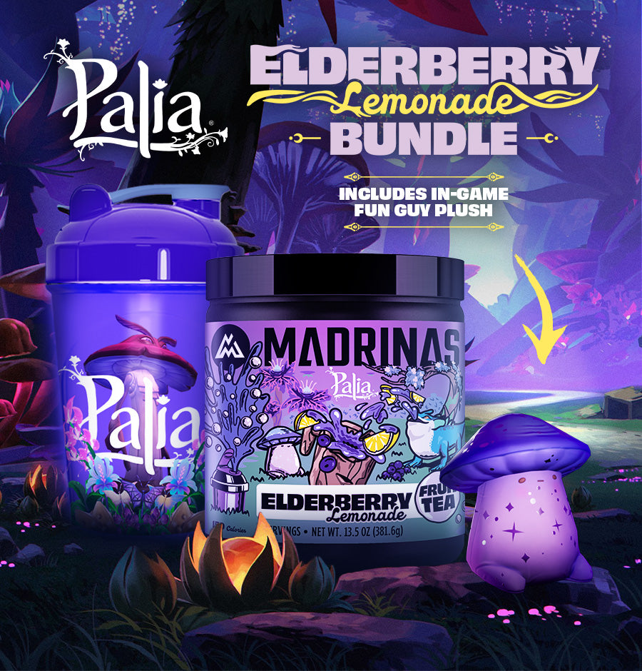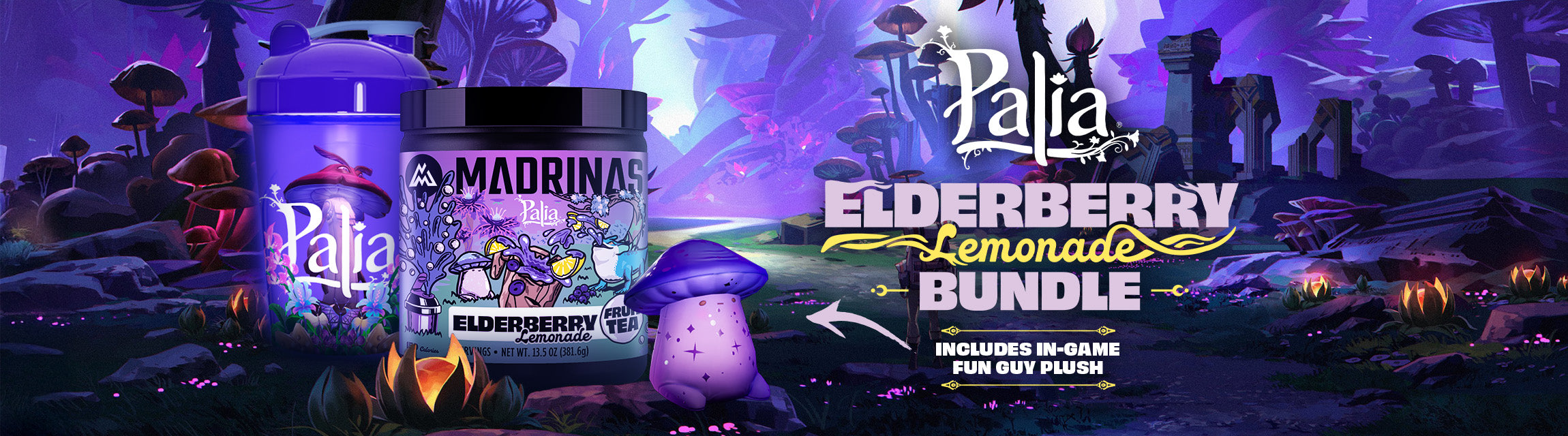Step into the Elderwood with the Limited Edition Palia Elderwood Bundle, featuring Elderberry Lemonade Instant Fruit Tea, a glow-in-the-dark shaker cup, and the MADRINAS Fun Guy plush! Inspired by Palia’s Elderwood expansion, this magical set brings the charm of Kilima Village straight to your cup.