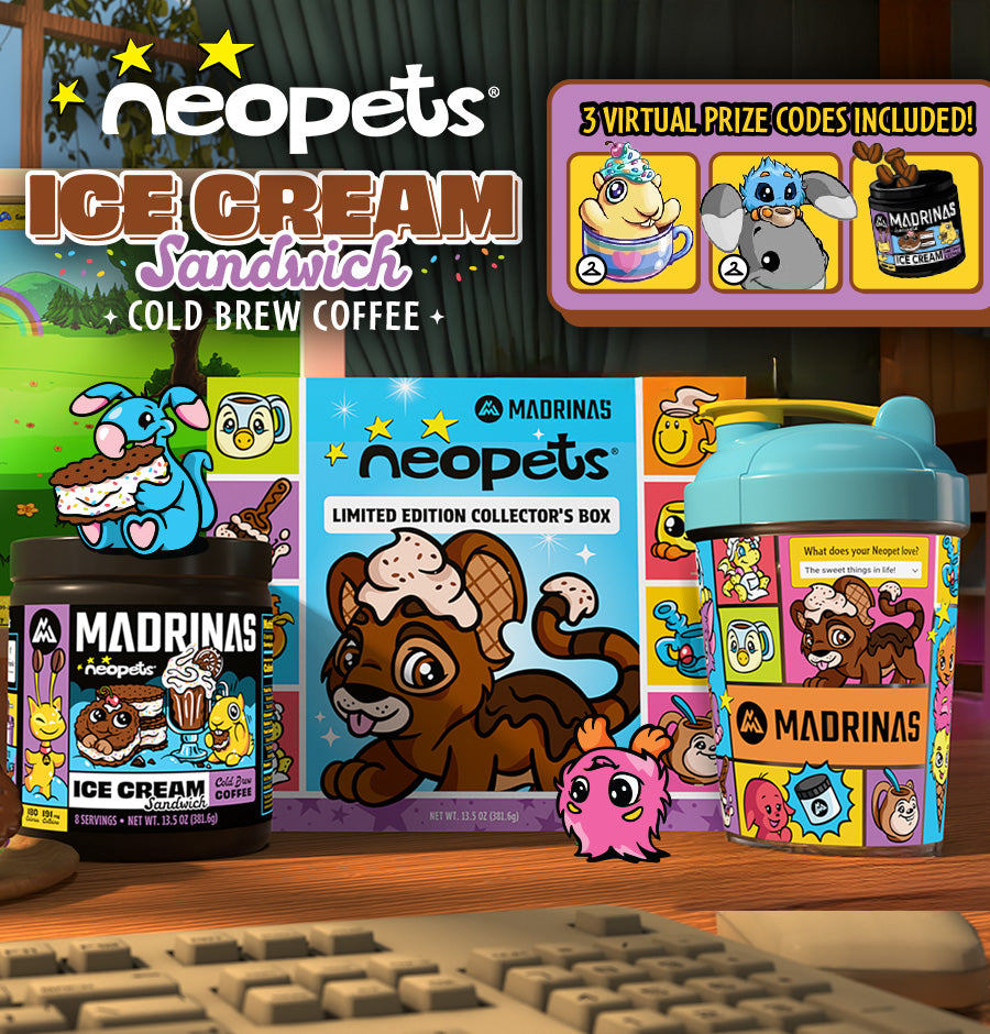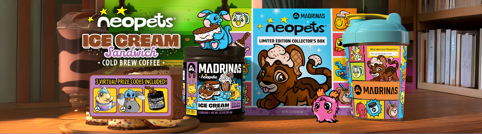 As a sweet tribute to the whimsical world of Neopia, we present the Limited Edition Neopets Ice Cream Sandwich Cold Brew Coffee! This creamy, dreamy treat blends rich instant, all-natural cold brew coffee with the classic flavors of a nostalgic ice cream sandwich. Perfect for powering your Neopian adventures. Sip, savor, and stay energized while exploring Neopia with your favorite Neopets!